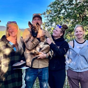 Currently we have three Beautiful Belgian Malinois X German Shepherd puppies available for adoption/fostering. All three are siblings, eight (8) month old females b. 2024-05-26. Super bright; strong pattern recognition; high drive; food, ball and stick motivated. Will sit on command; down for food; strong whistle and name recall response; crate and leash trained; vet checks, initial shots and health passport; and eligible for Pet Secure’s six (6) week breeder trial insurance coverage.